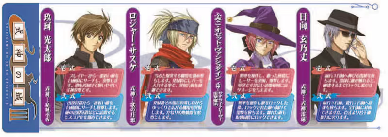 Players select one of several characters with different normal attacks, shikigami attacks, special attacks, and movement speeds.