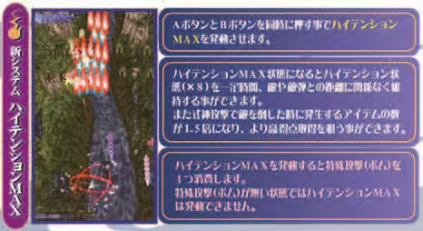 Also, when the Tension Bonus System is at its maximum, it becomes a high tension attack, and the firing speed and power increase.