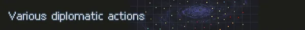 There are a dozen large factions and more local small forces in the galaxy. You can use diplomatic actions to increase your allies and vassals, and disintegrate the relationship between enemies.