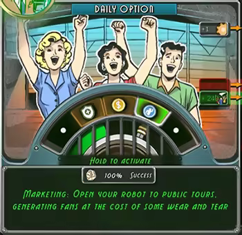 В режиме карьеры вы будете участвовать в ежедневных событиях, связанных с менеджментом робота, чтобы заработать ресурсы и открыть новые детали, способности и пассивные навыки экипажа.
