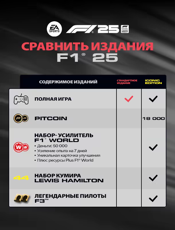 Оставьте свой след в мире гонок в F1® 25 — официальной игре чемпионата FIA Formula One World Championship™ 2025 с обновленным режимом «Моя команда», увлекательной третьей главой «Формулы победы» и не только!