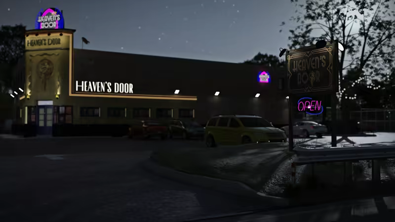 На пустынном участке дороги за пределами Хоумы, штат Луизиана, находится стриптиз-клуб Heaven's Door.