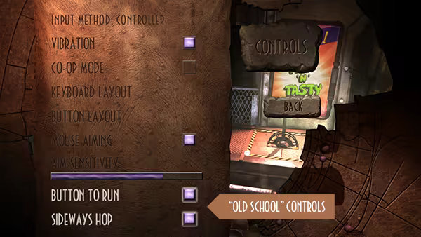 Tip: One of the quickest ways to make the controls in New 'n' Tasty a little easier is by switching on the two 'old school' control toggles, which are off by default. These tighten up Abe's movement and make lateral hops much easier to pull off.