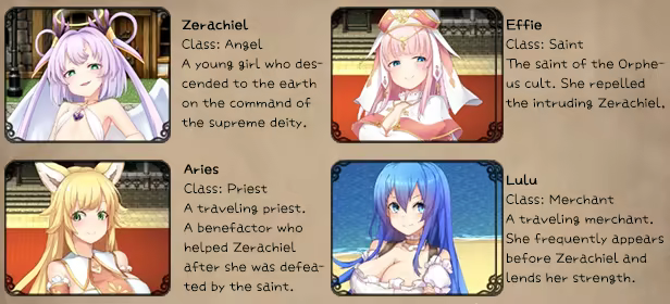 In a city that worships the Goddess of Fortune, an angel descends. Her name is Zerachiel. Zerachiel struggles to rescue her comrades who are imprisoned by the cult, but she is defeated and stripped of her powers by a girl claiming to be a saint...