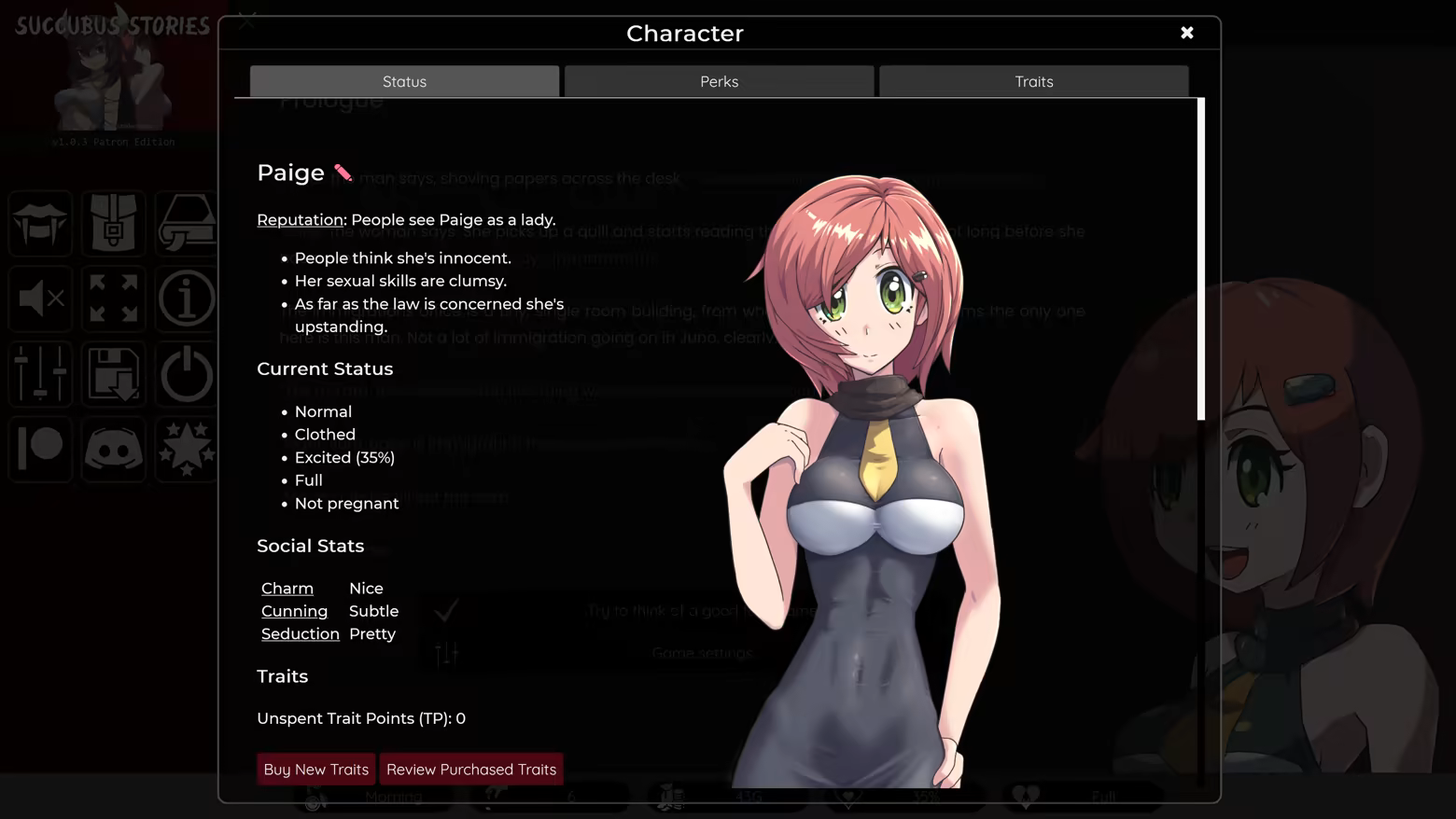 Meaningful progression. Unlock new behaviors and activities. Develop fetishes and sexual skills. Gain various traits and perks to further define your character. Use alchemy to create powerful potions with interesting effects.