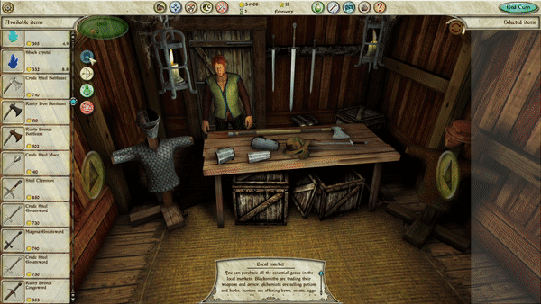 Игрокам необходимо нанять кузнеца и алхимика, чтобы иметь возможность изготавливать такие предметы, как оружие, доспехи или зелья. Каждый ремесленник обладает уникальными навыками и свойствами, влияющими на качество его продукции, скорость работы и количество используемого материала.