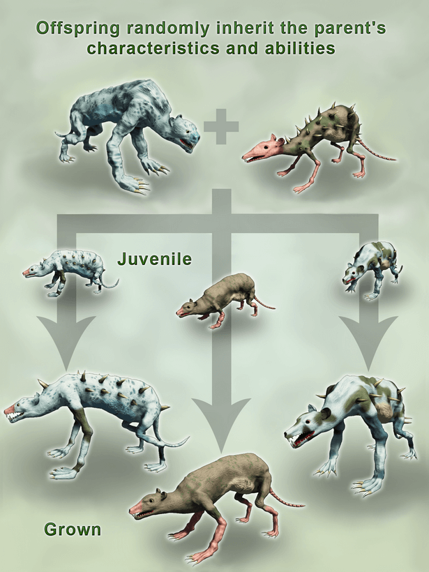 Природные виды слабы и плохо действуют на арене, но все они обладают хотя бы одной ценной способностью. Существует три класса существ: насекомые, рептилии и хищники. Игроки могут скрещивать только виды одного класса, а лучшее потомство можно выбрать для магического лечения, чтобы улучшить его боевые характеристики. Лечить можно только яйца и юных существ. Взрослые монстры зарабатывают опыт, сражаясь на арене, и получают новые навыки при повышении уровня, но эти навыки не наследуются.