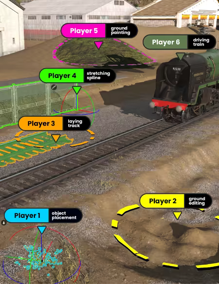Drive and create together using the most advanced multiplayer world building tech ever created for train simulation!